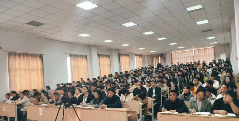 最后,娄校长作总结发言。他首先对过去两个月学校各项工作的推进情况进行了全面点评,客观分析了工作中取得的成绩与存在的不足,特别指出 “高效提升” 是当前及后续工作的核心目标 —— 既要在教学方法上求高效,通过优化课堂设计、创新教学模式提升教学质量;也要在管理服务上谋提升,以更精准的管理、更优质的服务为教育教学赋能。娄校长高度肯定了全体教职工在过往工作中的辛勤付出,对表现突出的教师提出了表扬,向坚守在教育教学一线的全体教职工表示衷心感谢。同时,他进一步强调,全体教职工需以此次会议为契机,将这一核心目标贯穿工作始终,在教学、教研、管理、服务各环节主动破题、积极作为,为学校高质量发展贡献更多力量。