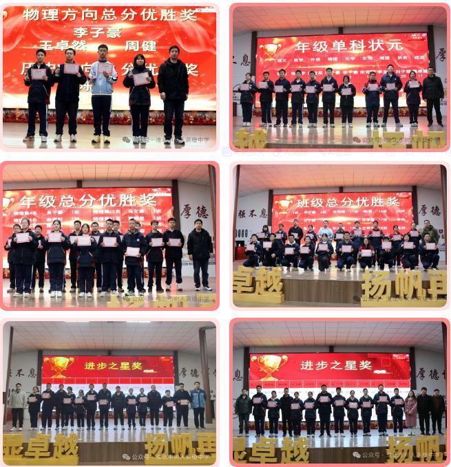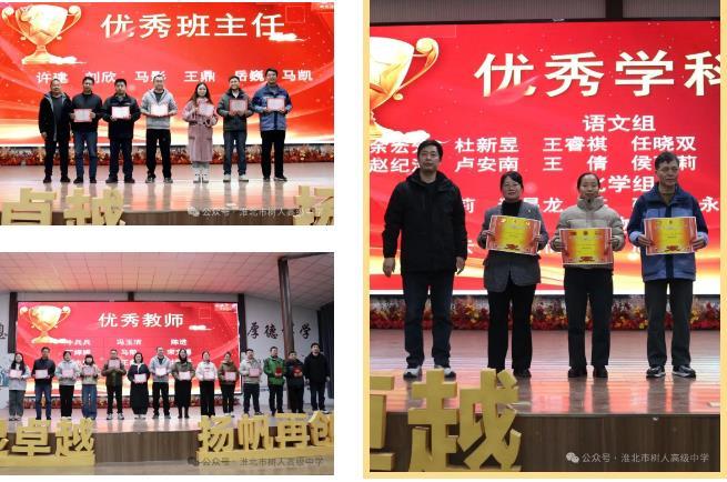 大会在庄严的国歌中拉开序幕,全体肃立,齐唱国歌。会议伊始,优秀学子、优秀班主任、优秀教师、优秀学科组依次上台领奖。这一刻的表彰,不仅是对获奖同学、教师努力的认可,更是对全体师生的激励。