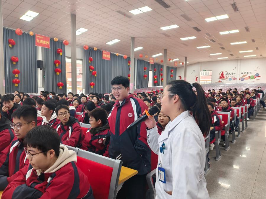 互动问答环节中,同学们踊跃参与,就近视防控方法、肥胖预防措施、坐姿矫正等问题与老师深入交流,现场气氛热烈活跃。