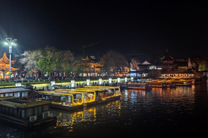 夜幕降临,秦淮河畔灯火初上。同学们漫步夫子庙街区,走在秦淮河畔,感受江南市井的烟火气。
