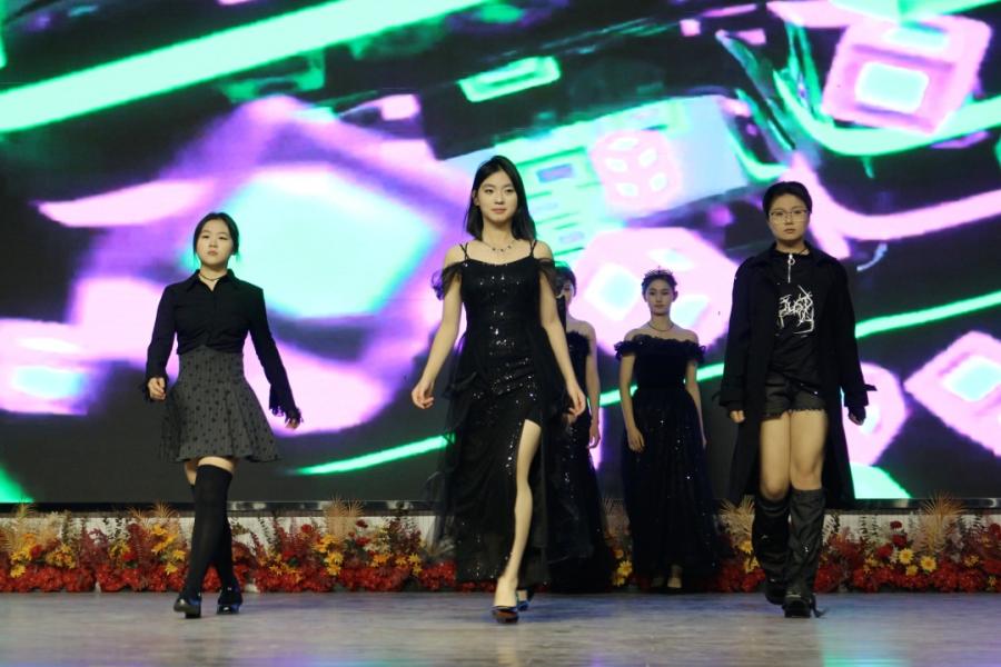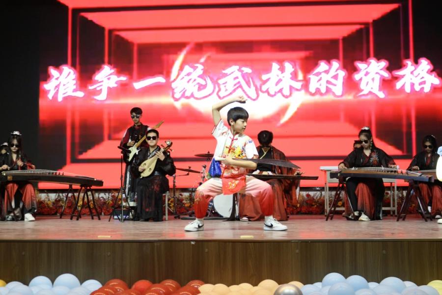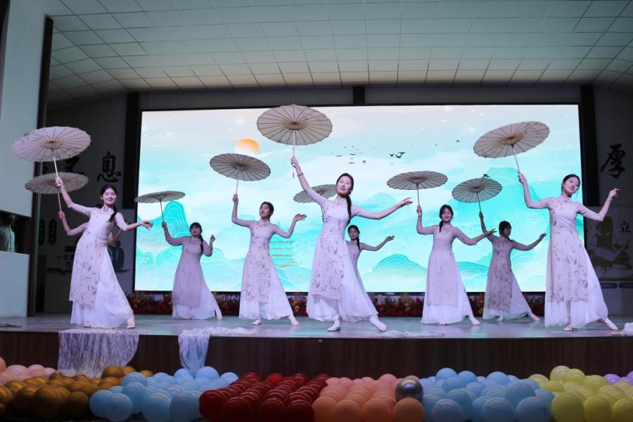 悠扬的歌曲旋律婉转流淌,轻快的舞步灵动飞扬,将青春的蓬勃活力传递给在场每一位观众;武术表演中,一招一式刚劲有力、行云流水,尽显中华武术的博大精深与少年意气;校园歌曲《等你下课》缓缓吟唱,唤醒了藏在时光里的青涩校园记忆,引发全场共鸣;幽默诙谐的相声段子《再见了,吾友》妙语连珠,在欢声笑语中传递着友谊的珍贵与温暖;创意舞台走秀风格百变、个性十足,完美诠释了校园文化的多元包容;小品《我蕉绿》以贴近学子生活的剧情,用幽默化解成长烦恼,引发青春共鸣;朗诵《铭记》则以铿锵有力的语调、饱含深情的表达,诉说着对革命先辈的缅怀之情与对当下幸福生活的珍惜之意,让现场观众深受触动。